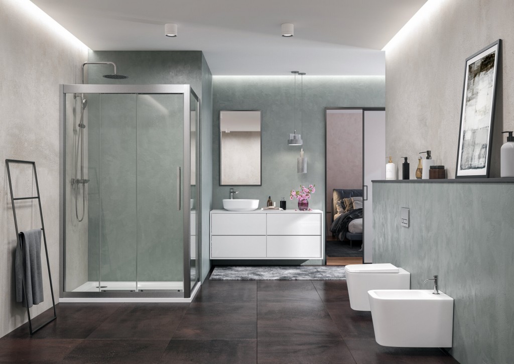 Sprchový kout obdélníkový se dvěma posuvnými dveřmi na jedné straně