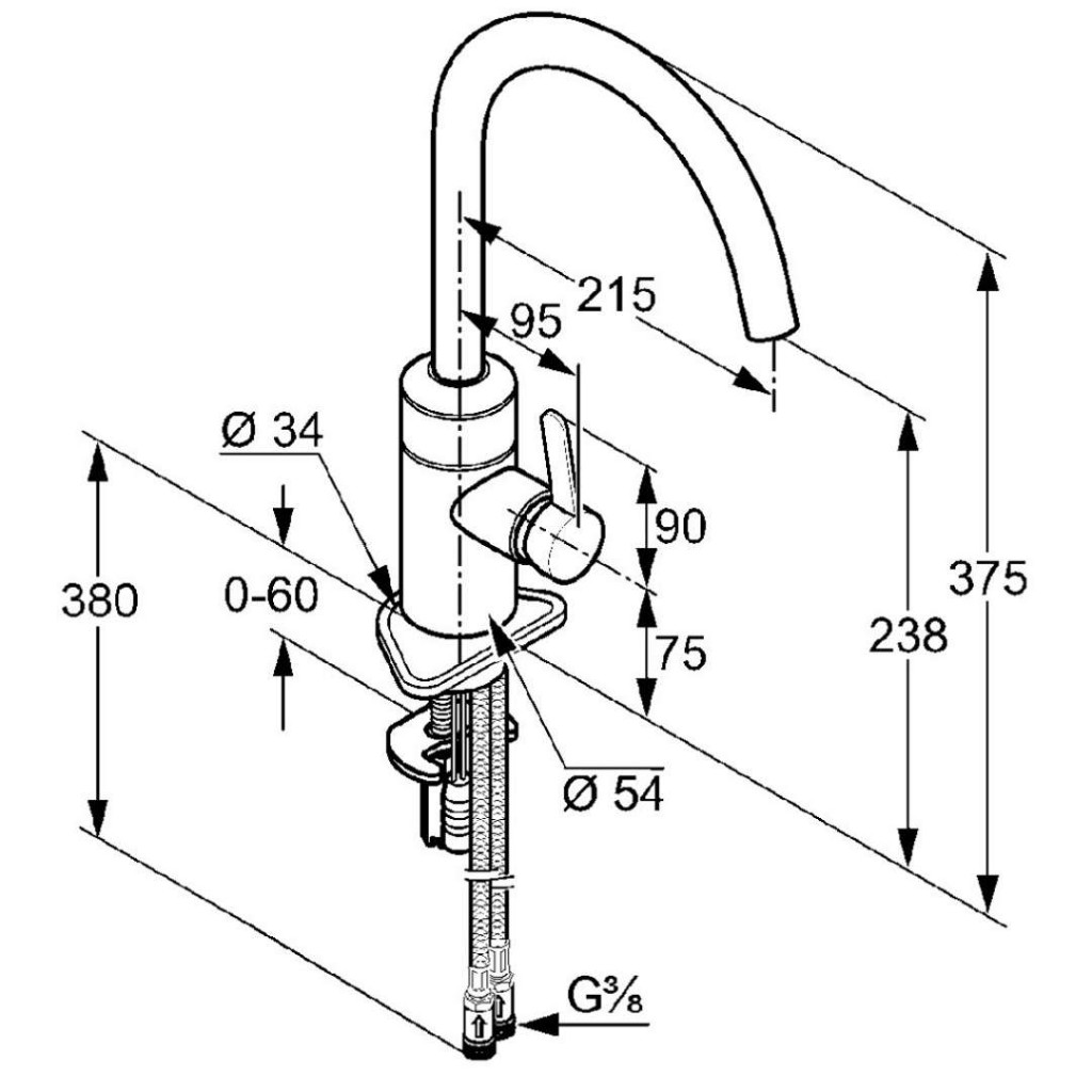 - flexibilní přípojky G 3/8