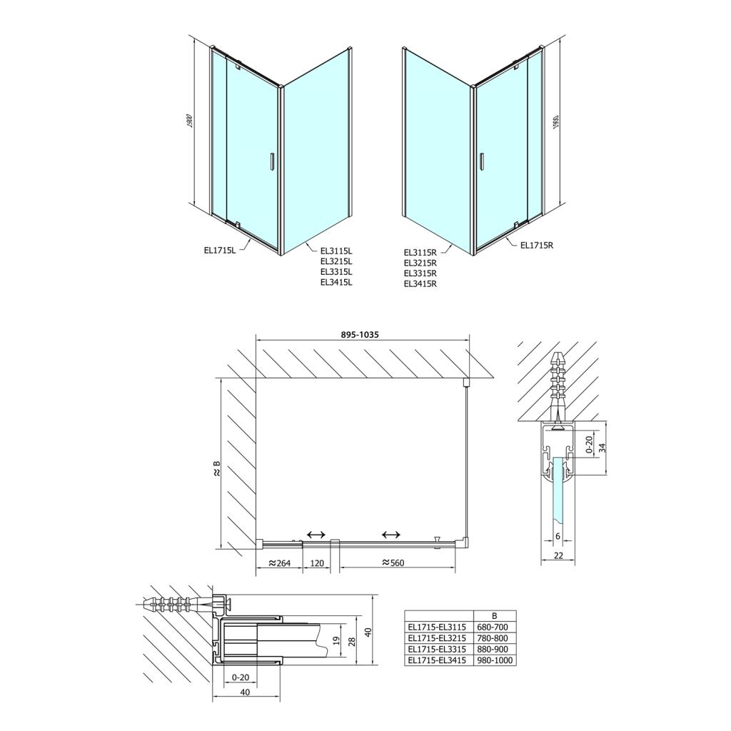 - Instalační rozměr dveří do niky lze díky rozšiřovacímu profilu EL825 zvětšit o 25 mm na každou stranu, celkem o 50 mm