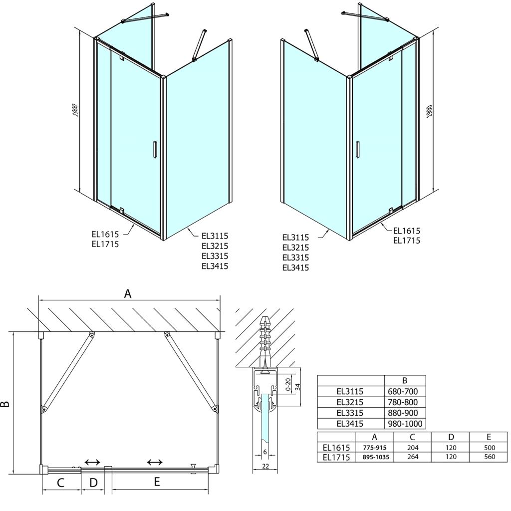 - Instalační rozměr dveří do niky lze díky rozšiřovacímu profilu EL825 zvětšit o 25 mm na každou stranu, celkem o 50 mm