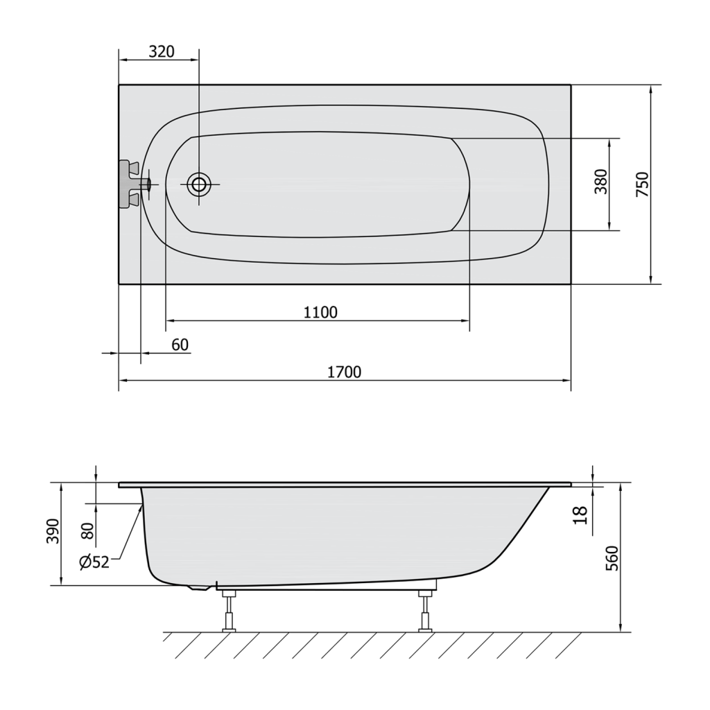 Vana má oproti standardním vanám výšku hrany okraje pouze 18 mm. Tato vana je určena pouze k obezdění, které díky nízké hraně působí estetičtěji, nebo zapuštění do pódia. Nelze ji instalovat s obkladovým panelem.