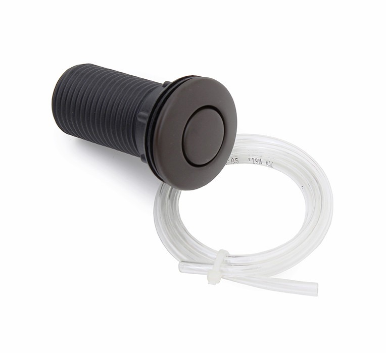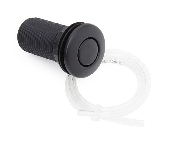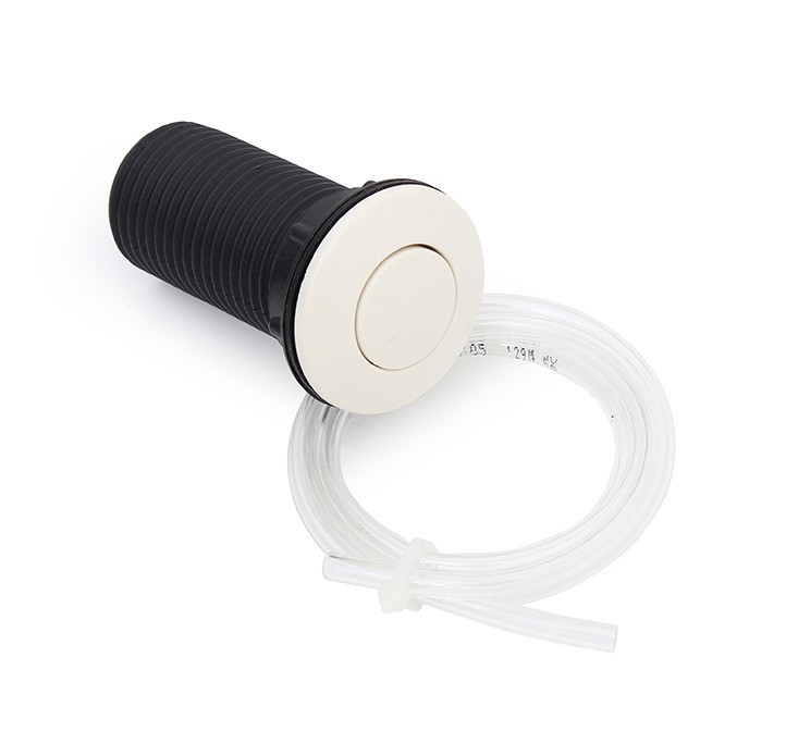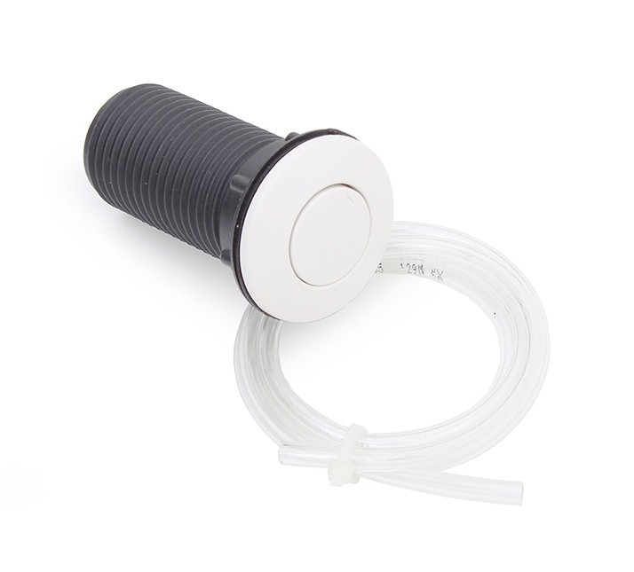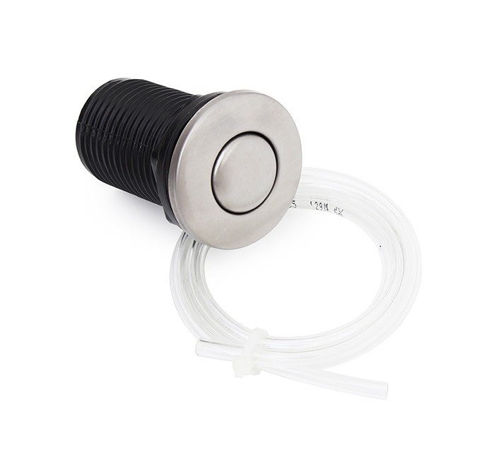Komplet Pneu-tlačítko vč. hadičky je určen pro drtiče EcoMaster s vestavěným vzduchovým spínačem. Pro jednoduché, pohodlné a zároveň bezpečné ovládání drtiče EcoMaster. Tato varianta je nejpoužívanější, jelikož drtič se zapíná a vypíná vždy v součinnosti s vodou, a takto může být tlačítko umístěno v bezprostřední blízkosti baterie, tzv. po ruce. Umístění: Do pracovní desky, nebo přímo do volných ploch dřezu. Bezpečnost: Pneuspínač splňuje veškeré požadavky na bezpečnost, jelikož jeho tlačítko nedává přímo el. impuls, ale tlakem stlačeného vzduchu sepne až chráněnou elektrickou část, umístěnou přímo v těle drtiče. Tlačítko a drtič odpadu jsou spojeny pouze vzduchovou hadičkou.
