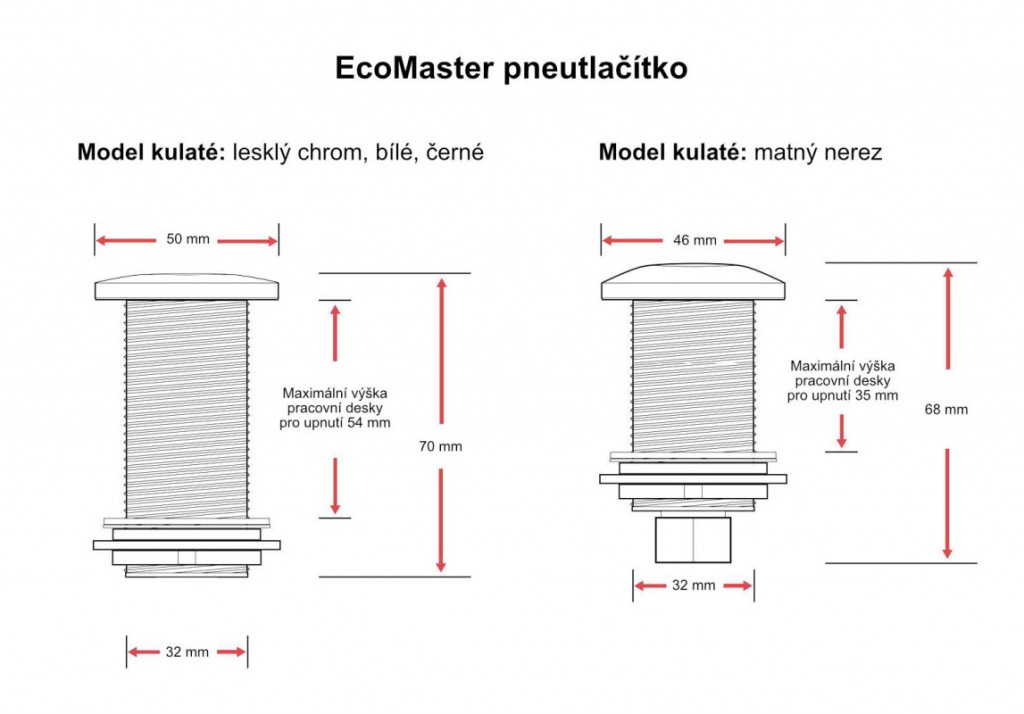 • Pochromovaný odolný plast. Univerzální nejprodávanější tlačítko s dlouhou živostností.