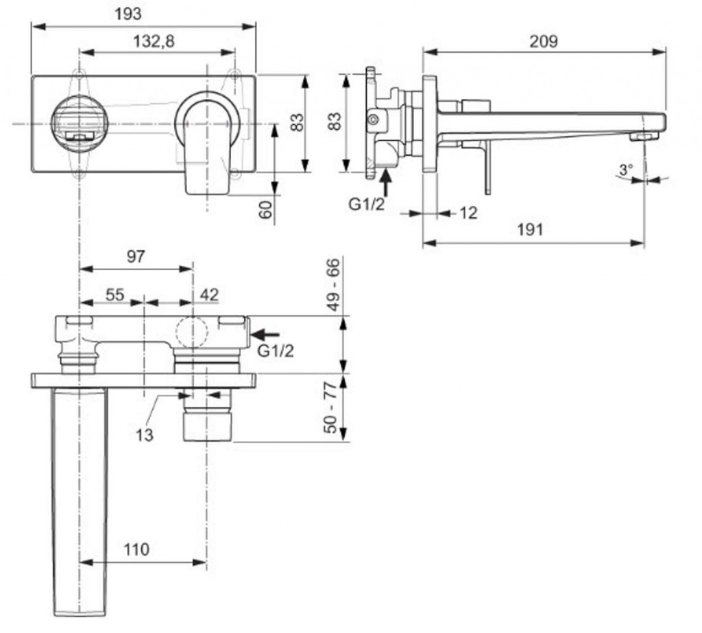 Umyvadlová páková podomítková baterie bez montážního tělesa vývod 191 mm pevný vývod kovová ovládací páka obdélníková rozeta 193 x 83 mm průtok při 3 barech 5 l/min kartuše průměr 28 mm s keramickými disky integrovaný omezovač teplé vody integrovaný… (celý popis)