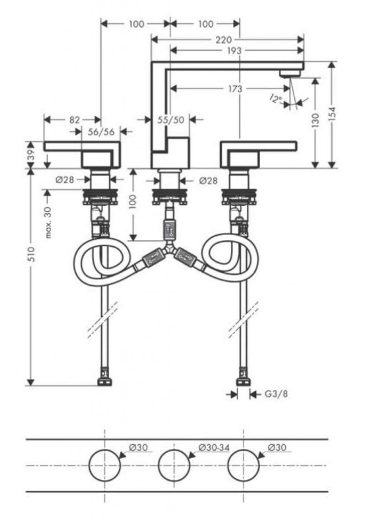 Umyvadlová baterie tříotvorová s odtokovou soupravou Push-Open