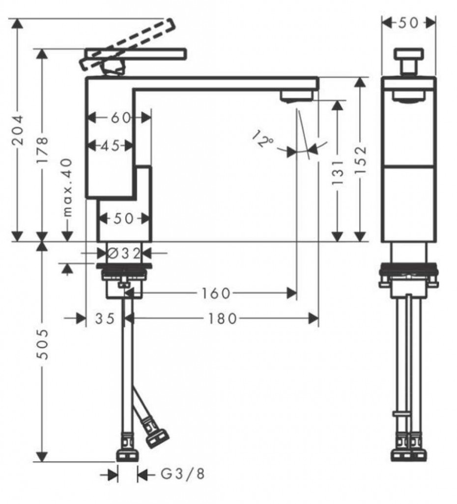 Páková umyvadlová baterie 130 s odtokovou soupravou Push-Open