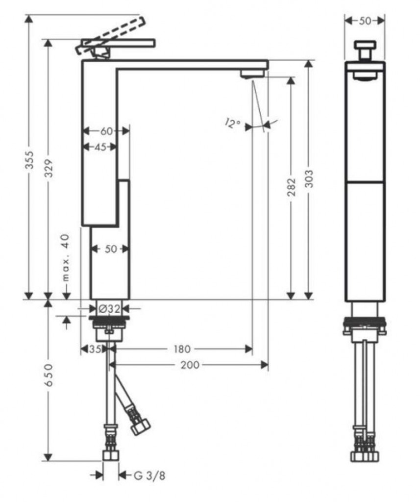 Páková umyvadlová baterie 280 s odtokovou soupravou Push-Open