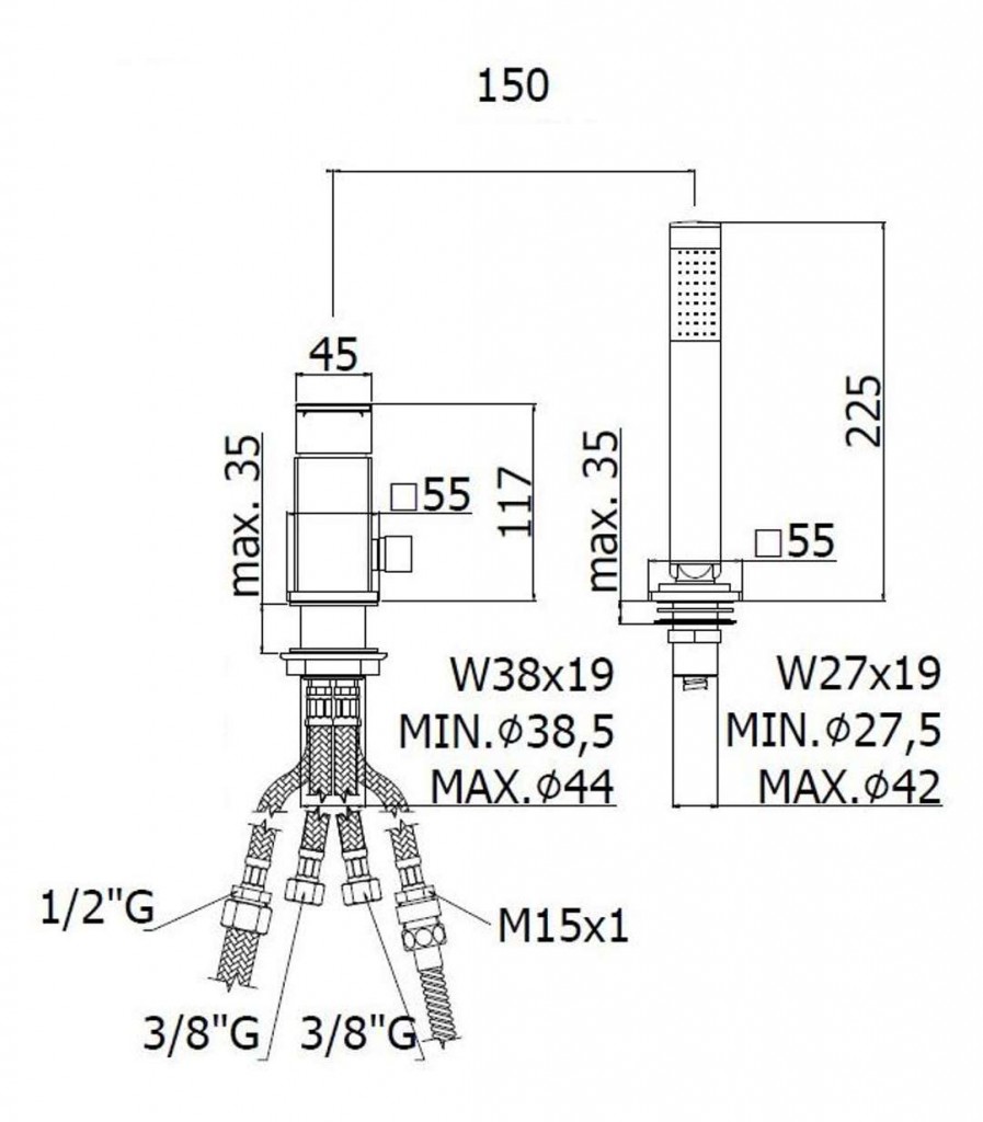 - výška tyčové sprchy 225 mm