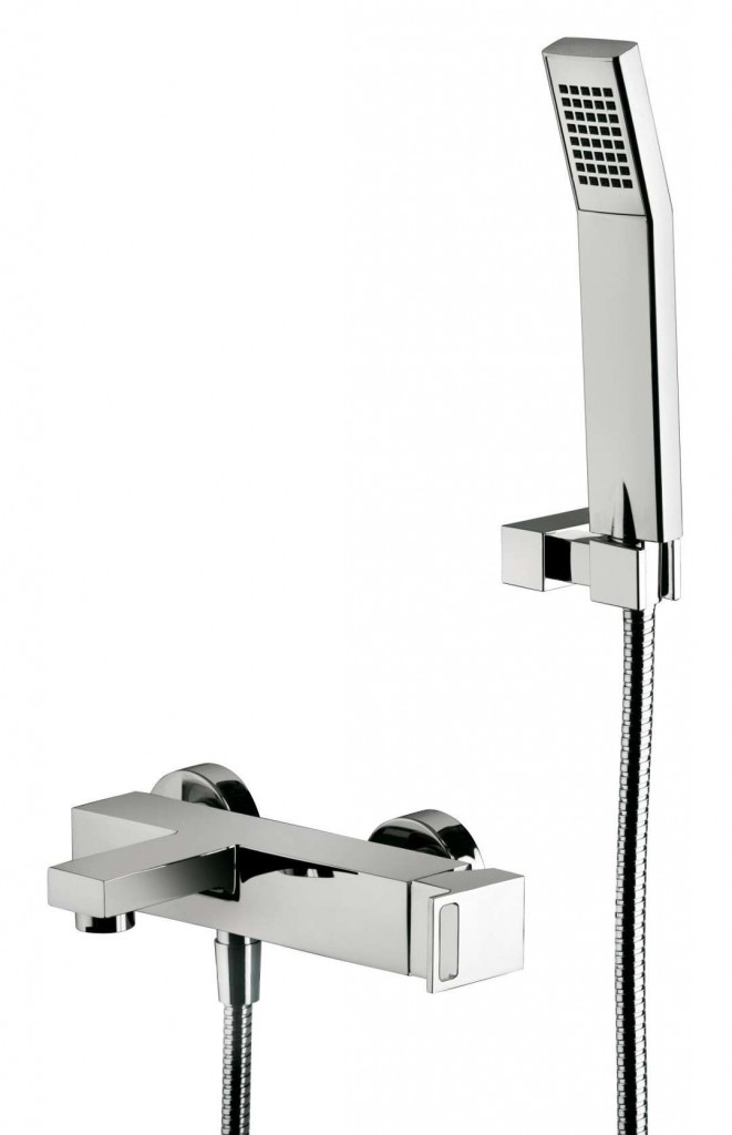 Set obsahuje baterii, sprchovou hadici, ruční sprchu a držák.