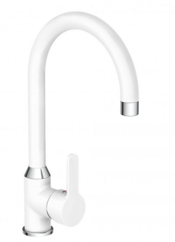 Dřezová baterie Eisl Diziani v trendy barevném provedení v kombinaci lesklý chrom s bílou se stane dominantou kuchyně. Pokud hledáte čistě bílou kuchyňskou baterii např. ke keramickému bílému dřezu, tak Eisl Diziani bílá je opravdu BÍLÁ bez jakýchkoliv teček.