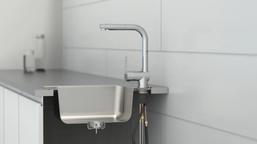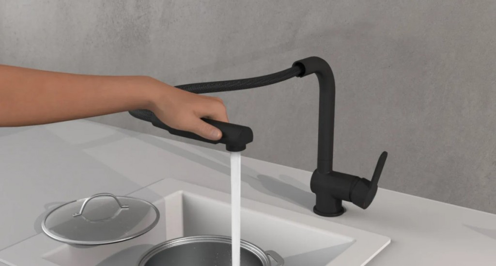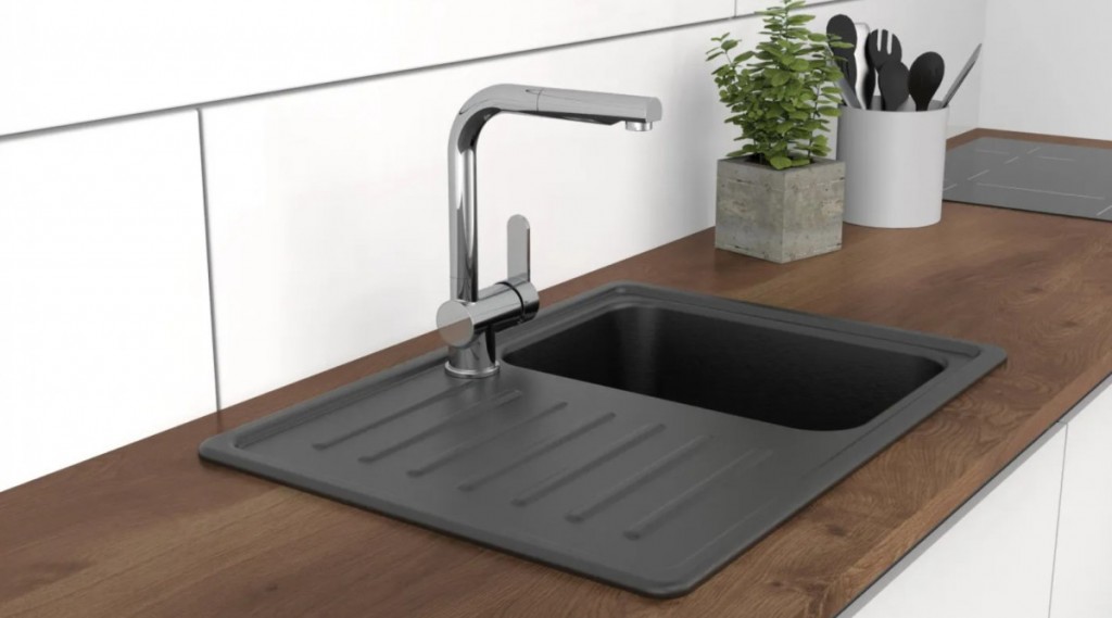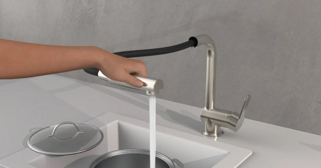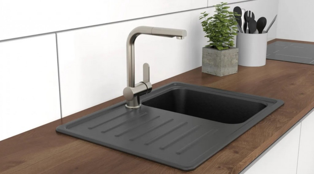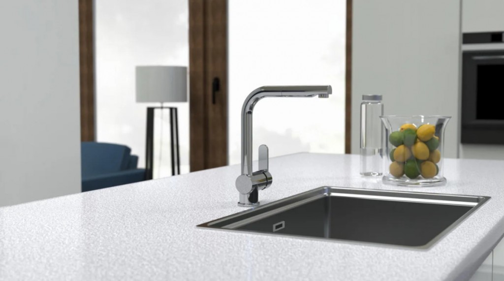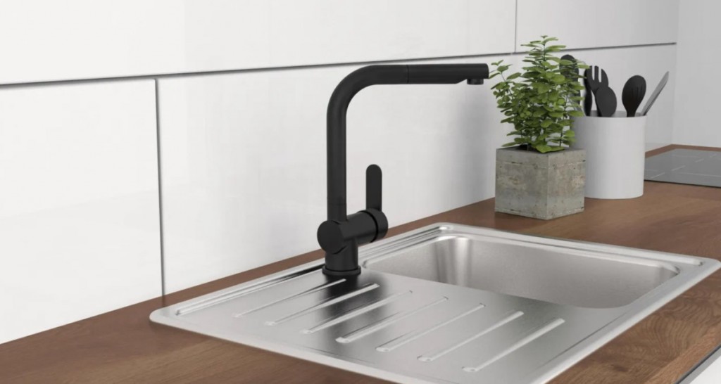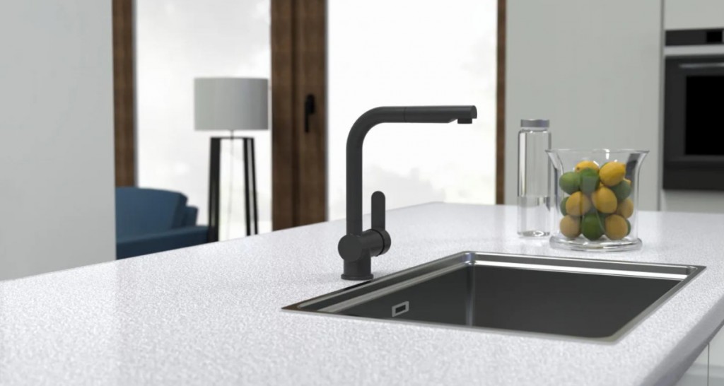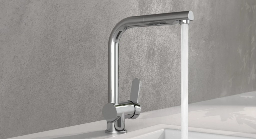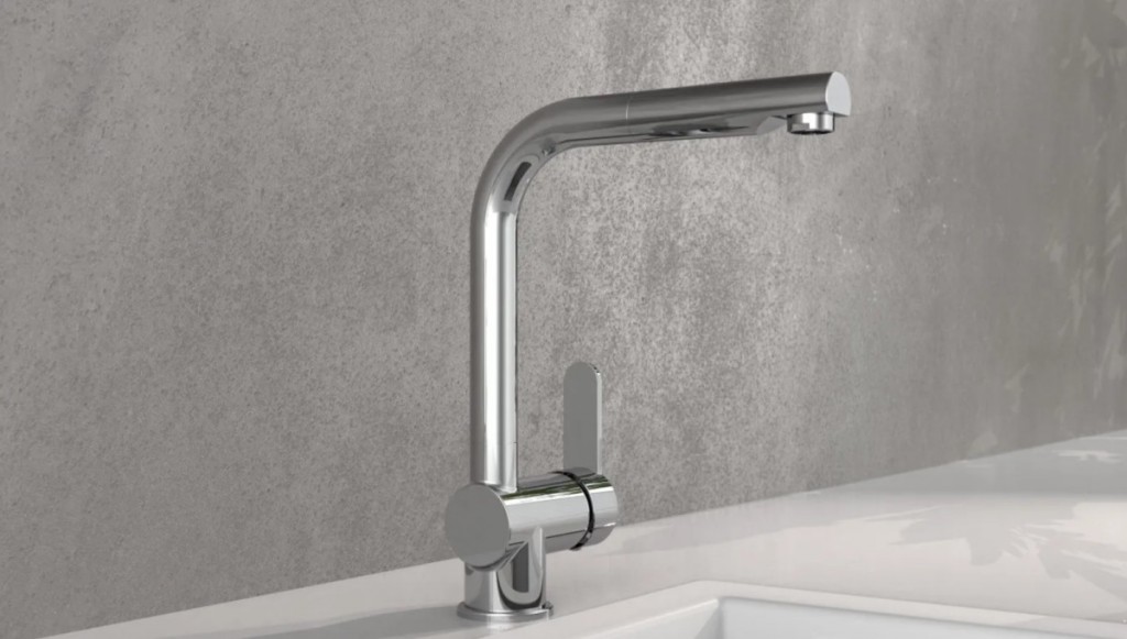 - kuchyňská baterie s otočným výtokem o 360°C, ideální pro dvoj dřezy