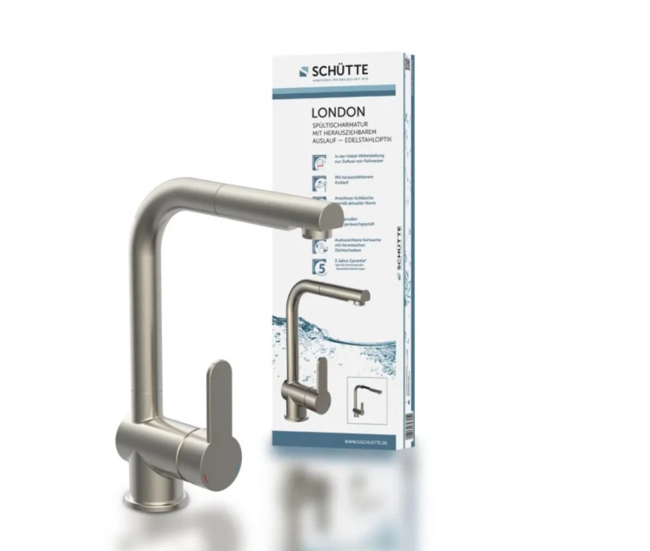 Baterie Eisl London bude skvěle vypadat nejen v klasickém provedení kuchyně, ale bude se vyjímat i jako ostrůvková baterie. Jednopáková baterie s energetickou úspornou funkcí studeného startu - to znamená, když je páka ve střední poloze, přitéká pouze studená voda. Kuchyňská baterie s výtokem otočným o 360° - ideální také pro dvojité dřezy. Prodloužitelná sprchová hadice (150 cm) pro pohodlné ovládání.