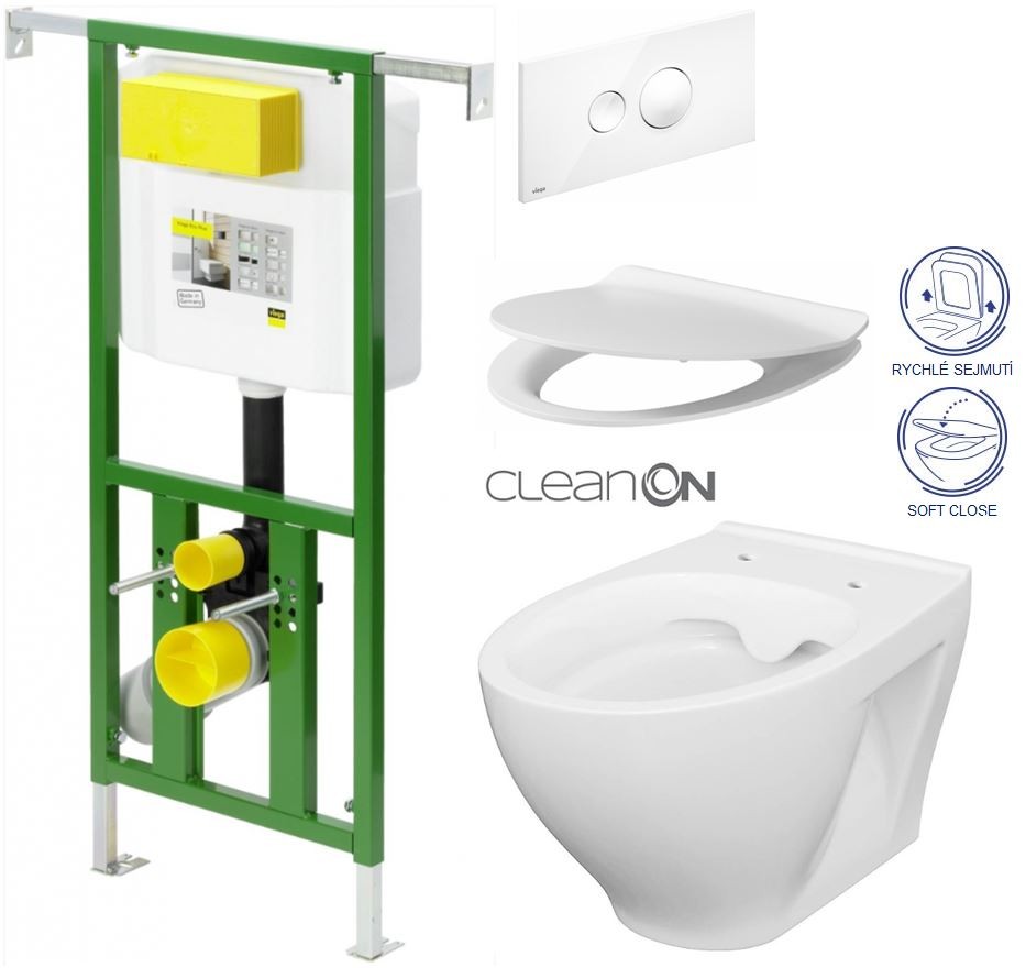 Oválná závěsná WC mísa MODUO s technologií CleanOn /bez oplachového kruhu/, kde se neshromžďují nečistoty jako ve standardních WC mísách s klasickým uzavřeným kruhem a jejich údržba je snažší a hygieničtější. WC mísa má úsporný oplach vody 3/5l.