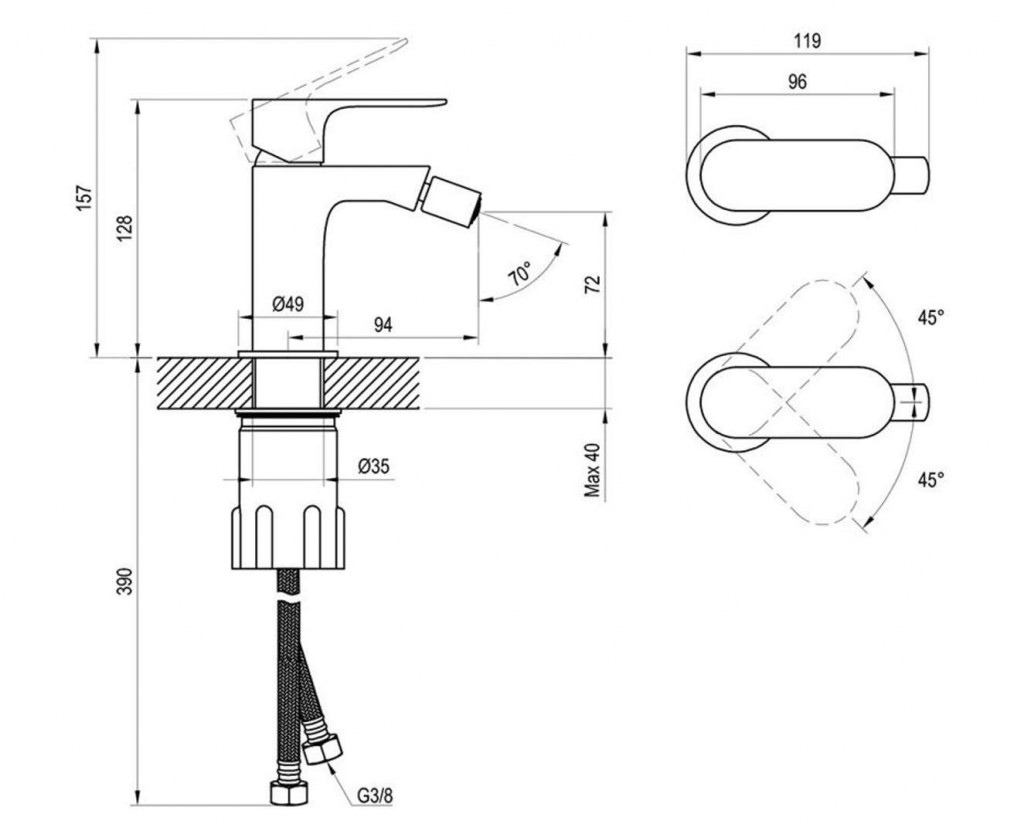 Bidetová baterie EL 056.60RGB, bez výpusti