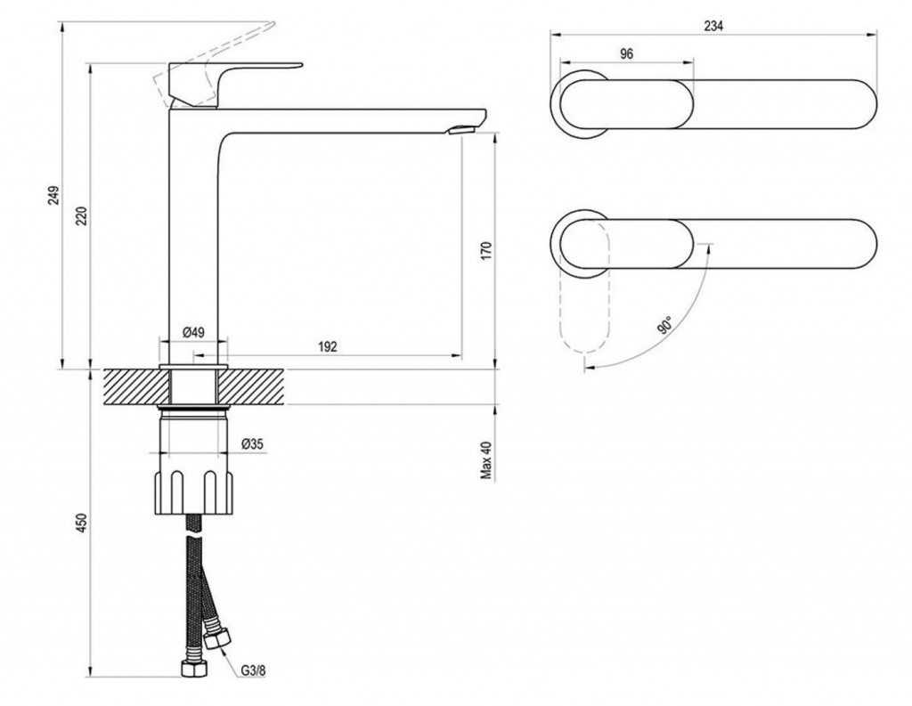 Umyvadlová baterie EL 014.61RGB, bez výpusti