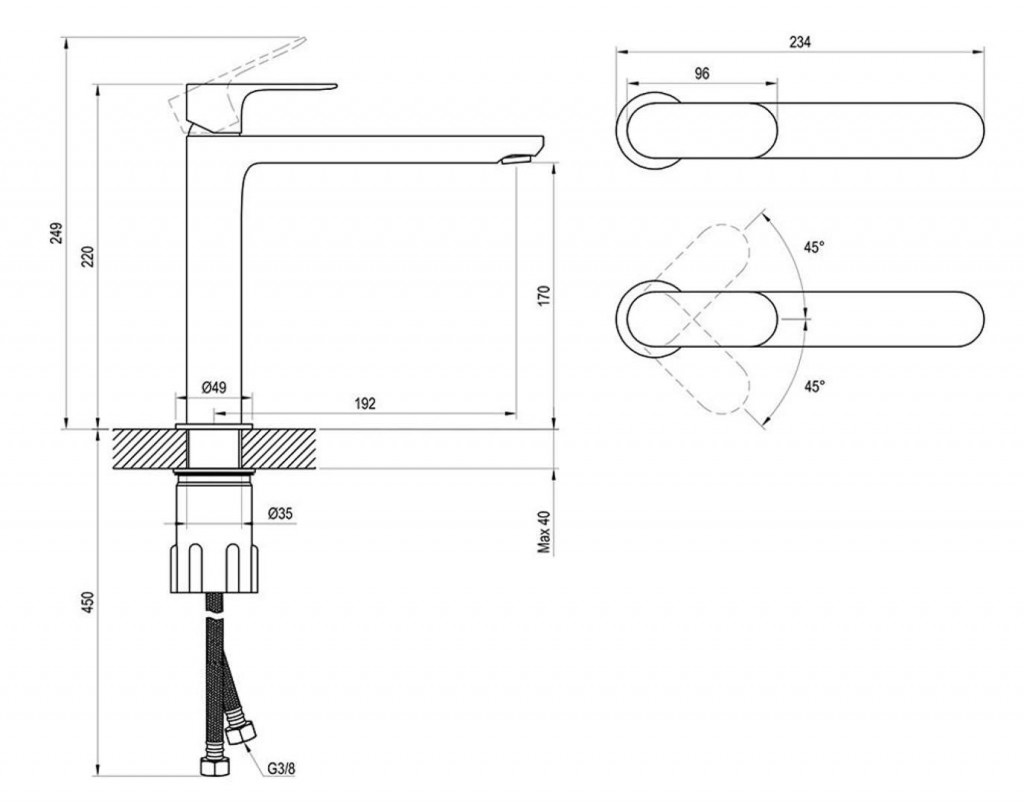 Umyvadlová baterie EL 014.00CR, bez výpusti