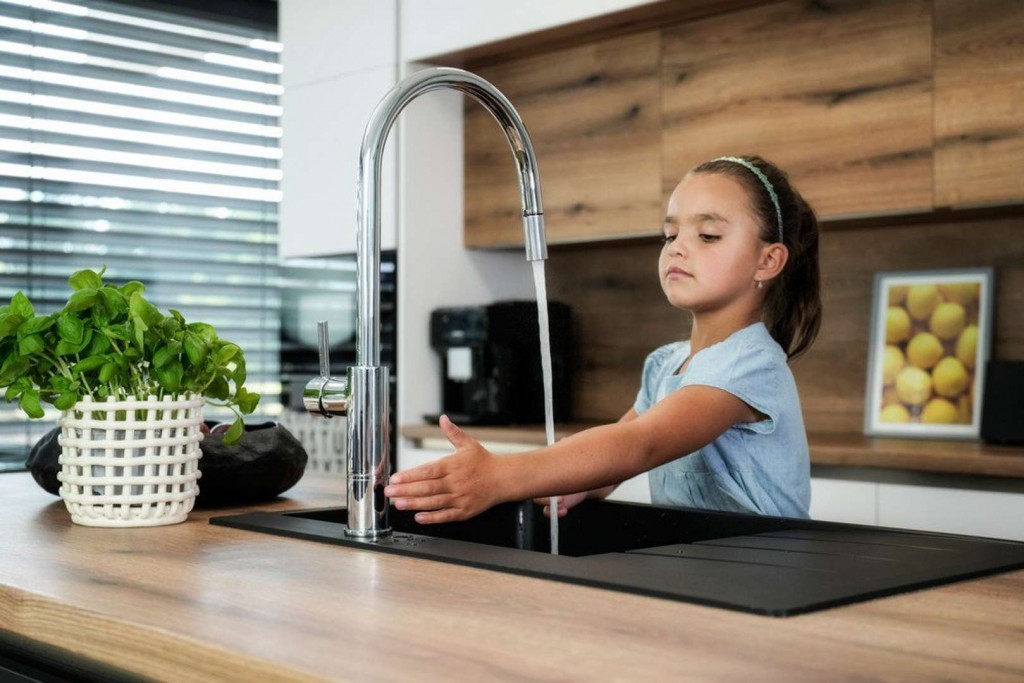- reaguje na přítomnost ruky ve snímané zóně okamžitým spuštěním vody