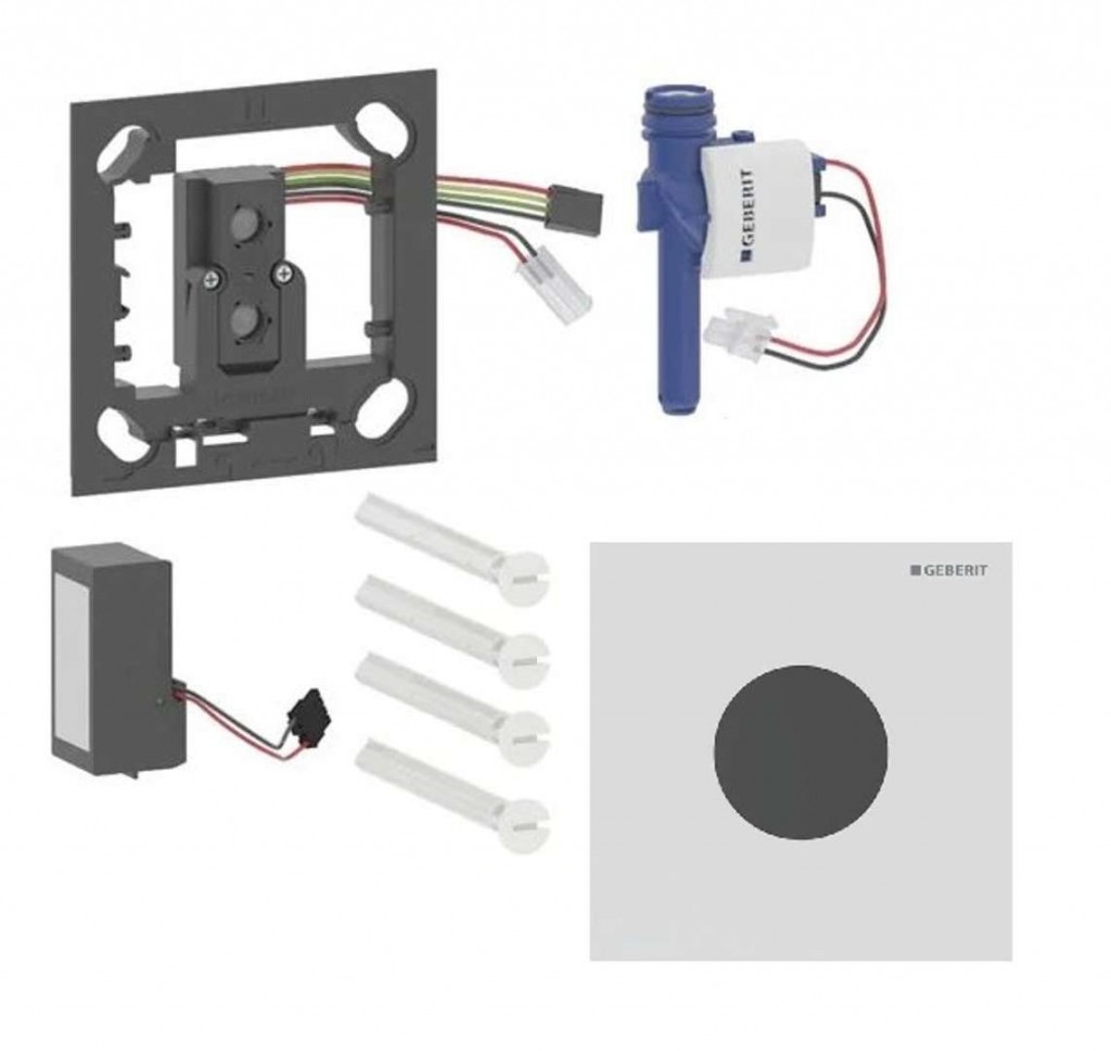 - Spojené vodičem k síti s Geberit Gateway prostřednictvím konvertoru GEBUS