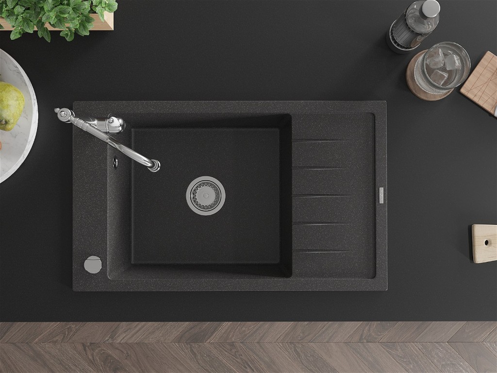 Speciální složení materiálu použitého pro výrobu je žula (80% žula – kámen, 20% pryskyřice) a jeho vysoká hustota garantuje bezpečné používání výrobku, a proto jsou granitové dřezy tak oblíbené. Díky povrchové úpravě nejsou na granitovém dřezu vidět zaschlé kapky, je odolný vůči skvrnám a neztrácí barvu. Povrch je odolný vůči nárazu, poškrábání, změně barvy, vysoké teplotě a teplotním šokům. Při jejich údržbě se používají obvyklé čistící, prostředky nebo prostředky na nádobí s jemným abrasivem. Výhodou je rozmanitá barevná nabídka.