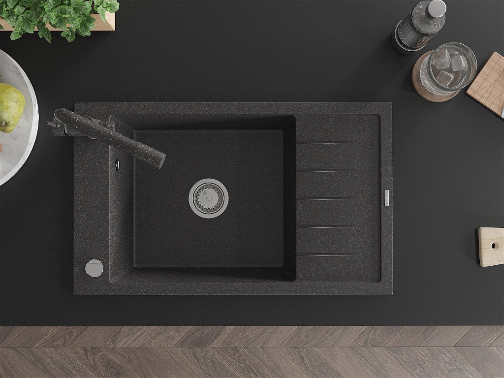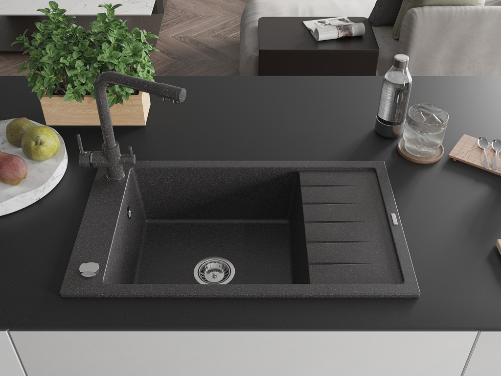 Speciální složení materiálu použitého pro výrobu je žula (80% žula – kámen, 20% pryskyřice) a jeho vysoká hustota garantuje bezpečné používání výrobku, a proto jsou granitové dřezy tak oblíbené. Díky povrchové úpravě nejsou na granitovém dřezu vidět zaschlé kapky, je odolný vůči skvrnám a neztrácí barvu. Povrch je odolný vůči nárazu, poškrábání, změně barvy, vysoké teplotě a teplotním šokům. Při jejich údržbě se používají obvyklé čistící, prostředky nebo prostředky na nádobí s jemným abrasivem. Výhodou je rozmanitá barevná nabídka.