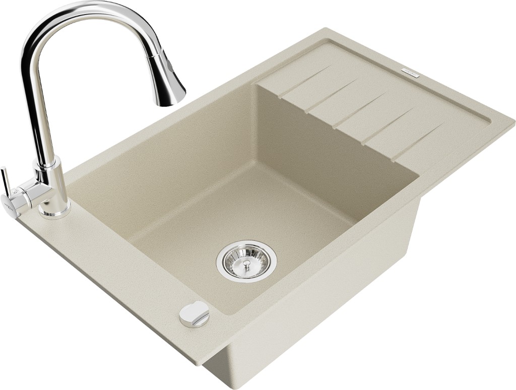 Speciální složení materiálu použitého pro výrobu je žula (80% žula – kámen, 20% pryskyřice) a jeho vysoká hustota garantuje bezpečné používání výrobku, a proto jsou granitové dřezy tak oblíbené. Díky povrchové úpravě nejsou na granitovém dřezu vidět zaschlé kapky, je odolný vůči skvrnám a neztrácí barvu. Povrch je odolný vůči nárazu, poškrábání, změně barvy, vysoké teplotě a teplotním šokům. Při jejich údržbě se používají obvyklé čistící, prostředky nebo prostředky na nádobí s jemným abrasivem. Výhodou je rozmanitá barevná nabídka.