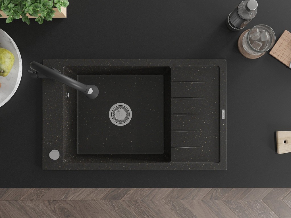 Speciální složení materiálu použitého pro výrobu je žula (80% žula – kámen, 20% pryskyřice) a jeho vysoká hustota garantuje bezpečné používání výrobku, a proto jsou granitové dřezy tak oblíbené. Díky povrchové úpravě nejsou na granitovém dřezu vidět zaschlé kapky, je odolný vůči skvrnám a neztrácí barvu. Povrch je odolný vůči nárazu, poškrábání, změně barvy, vysoké teplotě a teplotním šokům. Při jejich údržbě se používají obvyklé čistící, prostředky nebo prostředky na nádobí s jemným abrasivem. Výhodou je rozmanitá barevná nabídka.