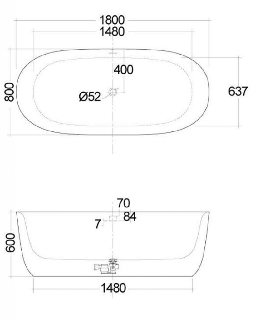- odtok uprostřed s prostorem pro sifon pod dnem vany
