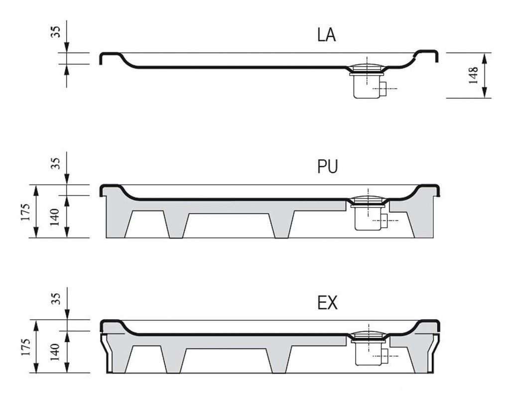 - v provedení: LA – k instalaci na nožičky (Base) nebo k zapuštění