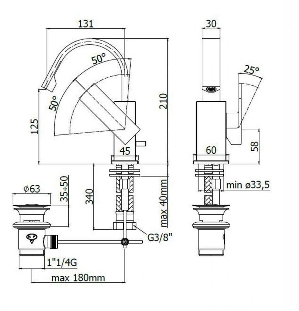 Bidetová stojánková páková baterie s výpustí