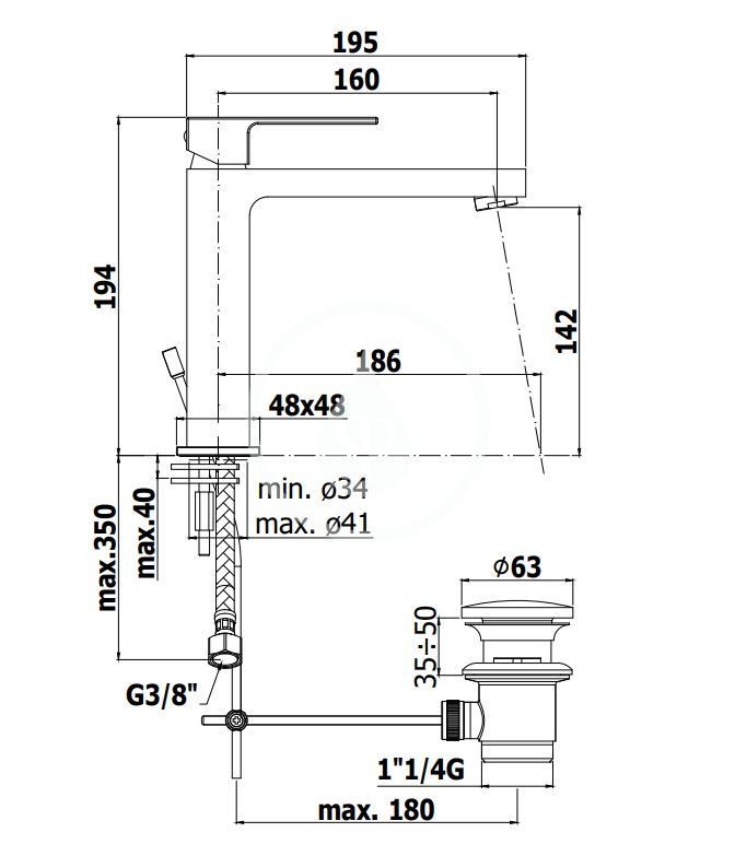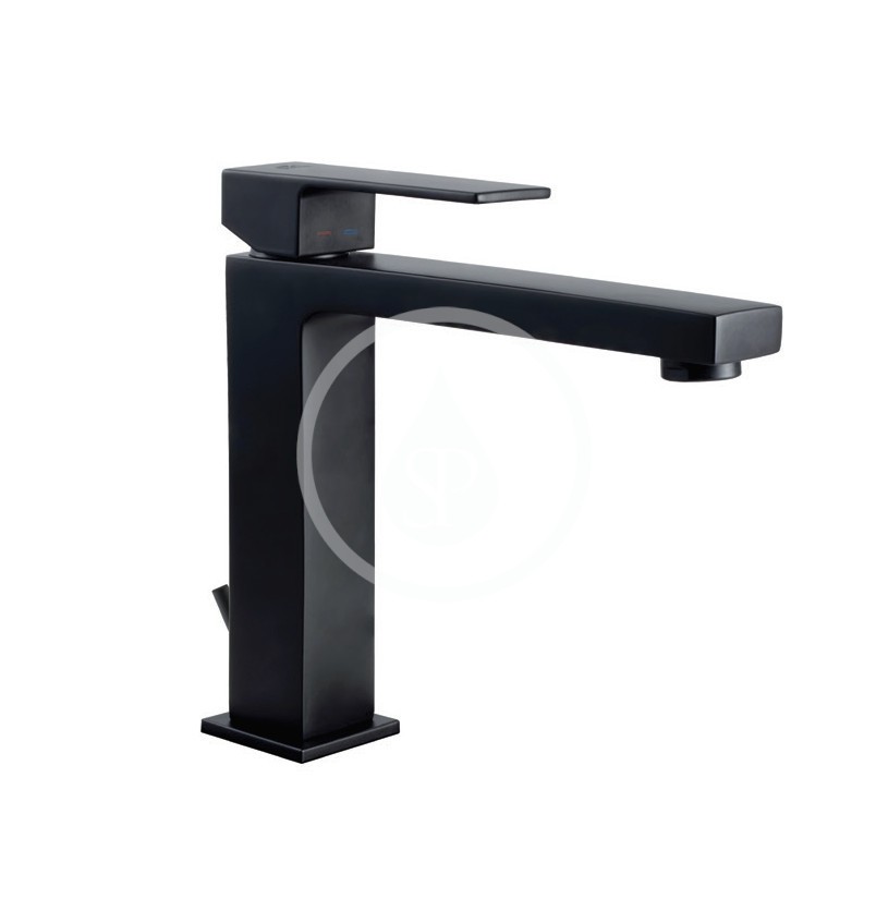 Stojánková umyvadlová baterie pákové ovládání s uzavíratelnou výpusti 1 1/4"  ovládanou táhlem krytka Ø 63 mm výška: 194 mm comfort zone: 142 mm délka výtoku: 160 mm barva: matná černá nerezové připojovací hadice G 3/8 perlátor M24x1 (celý popis)