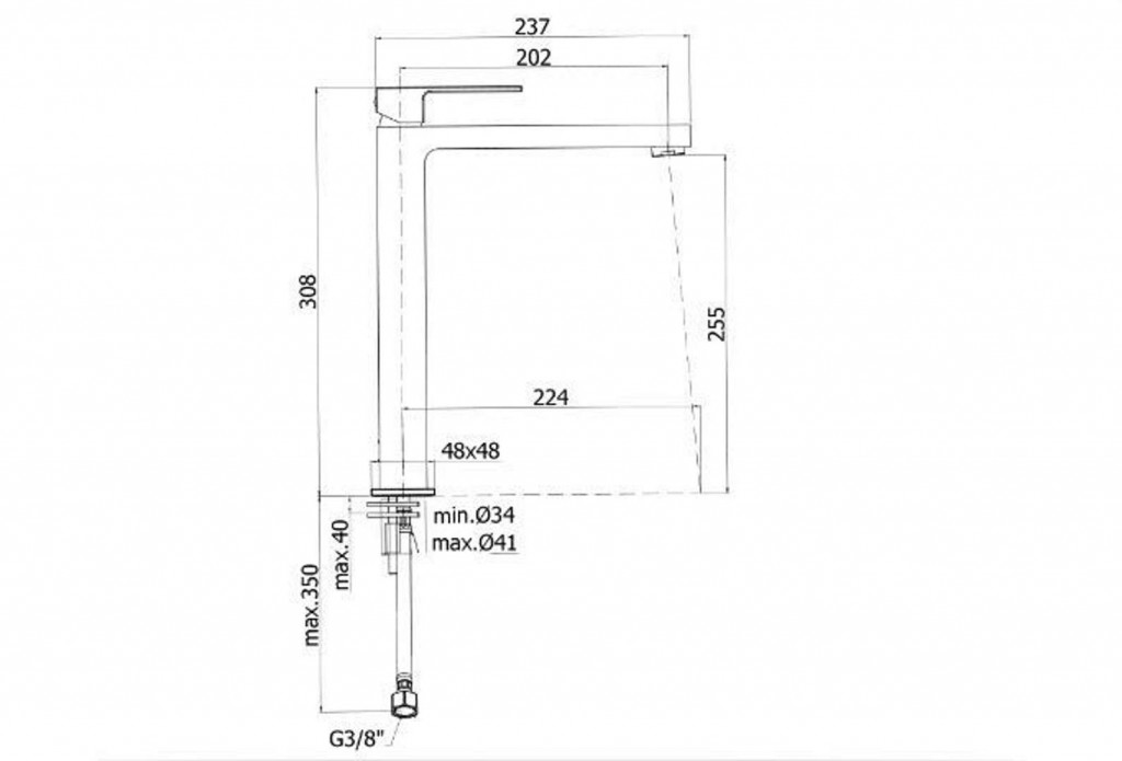 Umyvadlová stojánková páková baterie vysoká bez výpustí