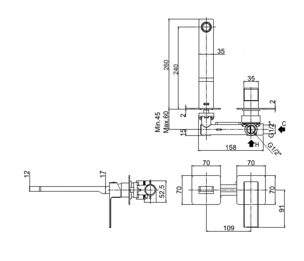 Umyvadlová 2 prvková nástěnná páková baterie pod omítku s tělesem