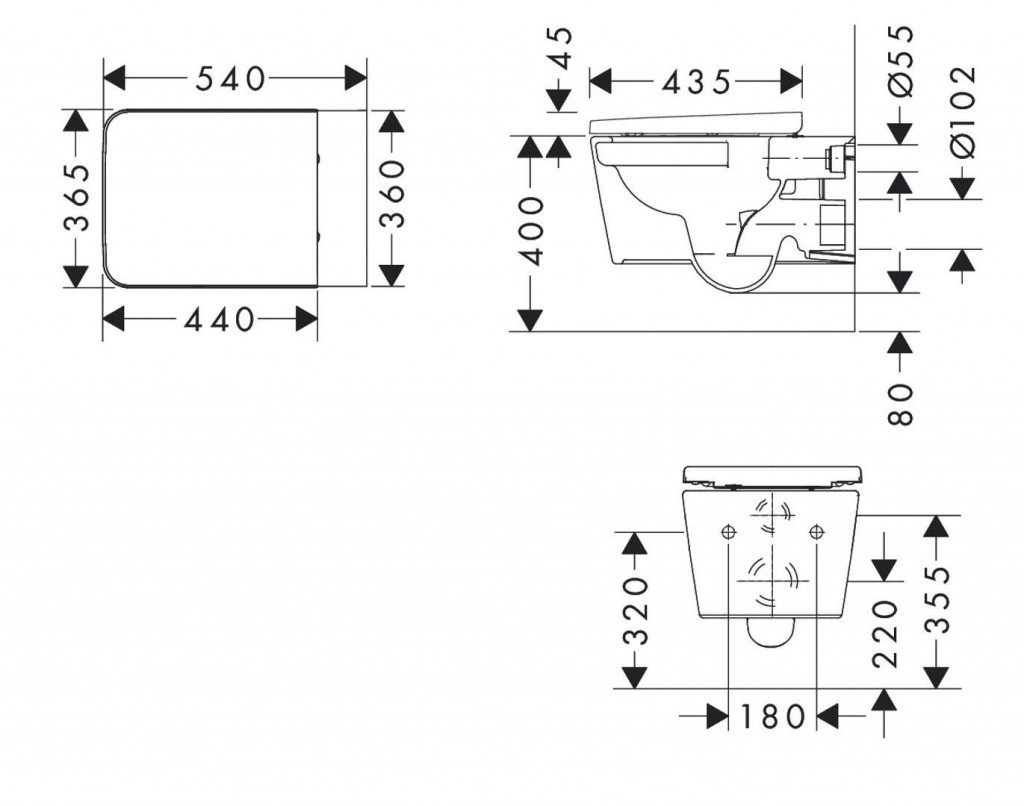 Závěsná WC sada 540 splachování AquaChannel Flush s WC sedátkem, SoftClose a QuickRelease