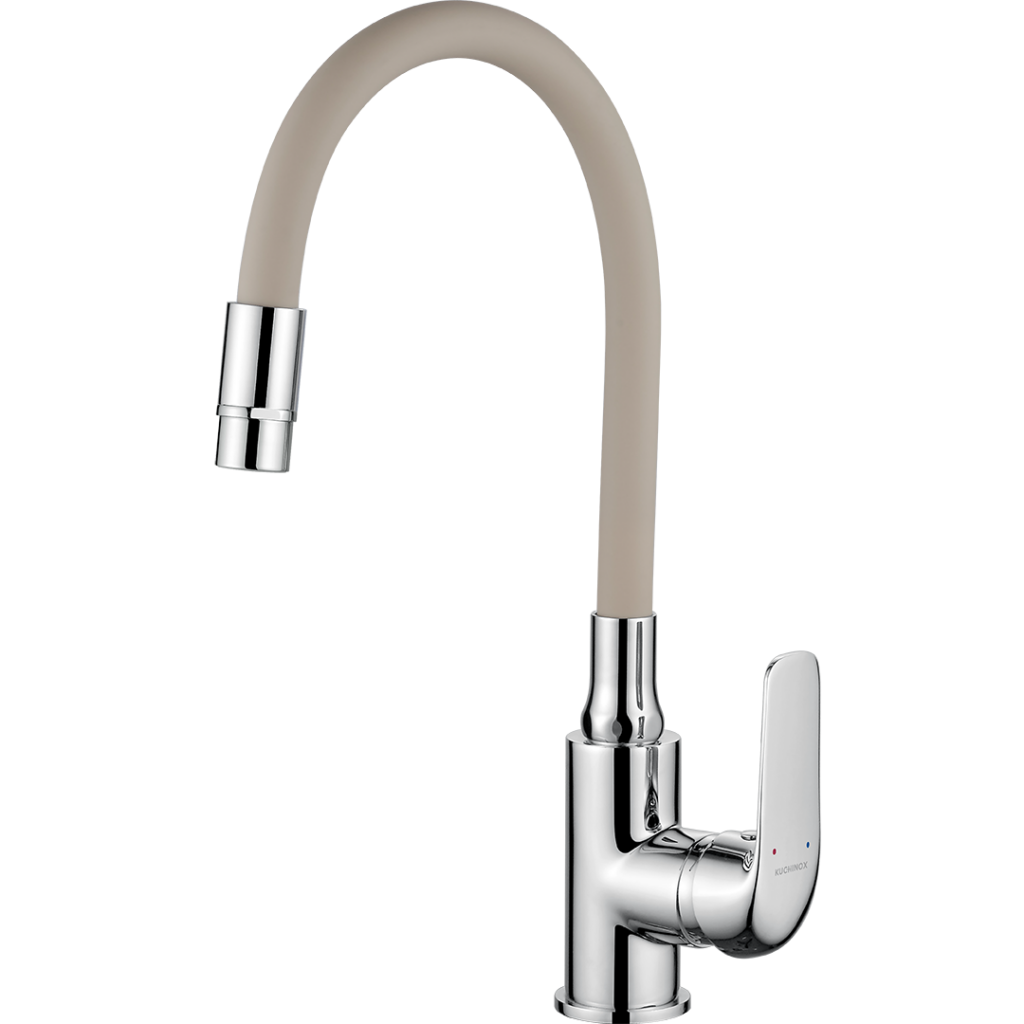Dřezová baterie série ELZA představuje dokonalé spojení funkčnosti, estetiky a inovace. Její volně stojící konstrukce s flexibilním výtokem ve tvaru U nabízí dvojí funkci, která uspokojí i ty nejnáročnější uživatele. Chromové tělo baterie je elegantně doplněno výtokem v černé, béžové nebo šedé barvě, což umožňuje snadné sladění s různými styly kuchyní. Kombinace kovového lesku a barevných akcentů dodává armatuře moderní a nadčasový vzhled.