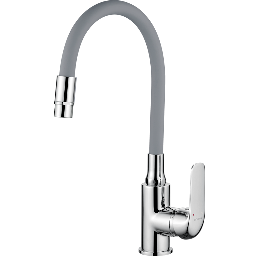 Dřezová baterie série ELZA představuje dokonalé spojení funkčnosti, estetiky a inovace. Její volně stojící konstrukce s flexibilním výtokem ve tvaru U nabízí dvojí funkci, která uspokojí i ty nejnáročnější uživatele. Chromové tělo baterie je elegantně doplněno výtokem v černé, béžové nebo šedé barvě, což umožňuje snadné sladění s různými styly kuchyní. Kombinace kovového lesku a barevných akcentů dodává armatuře moderní a nadčasový vzhled.