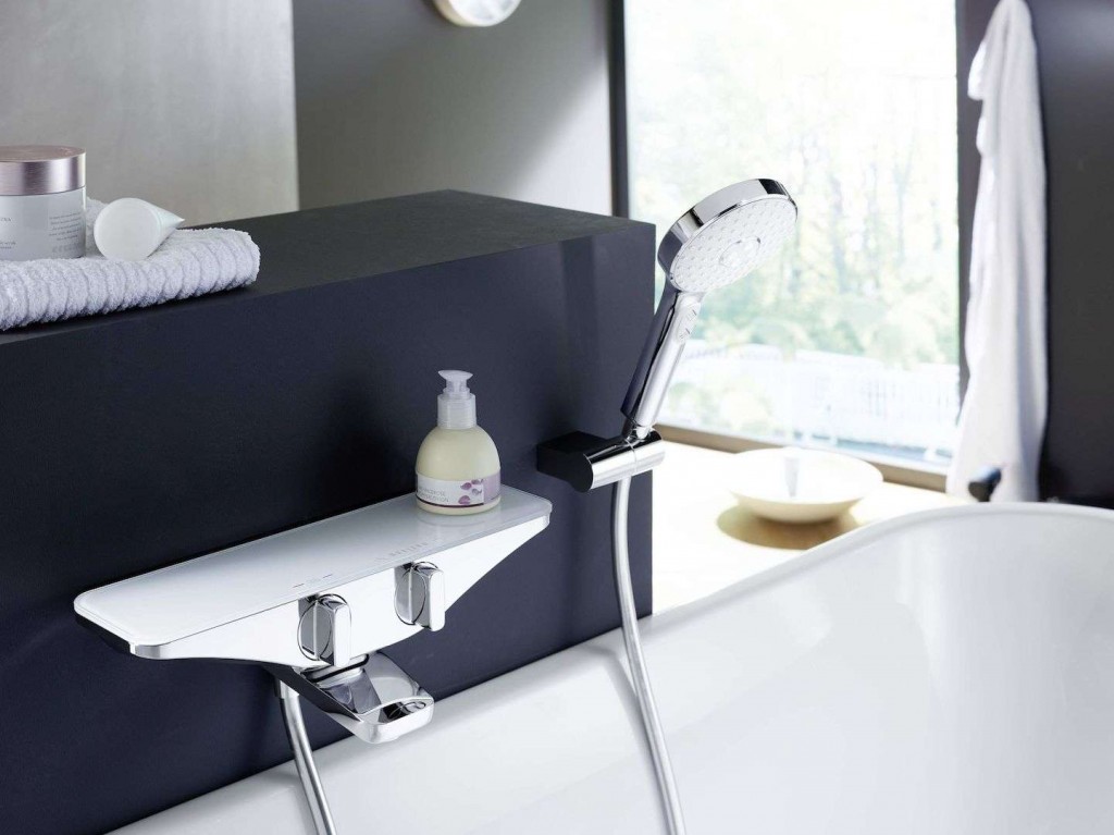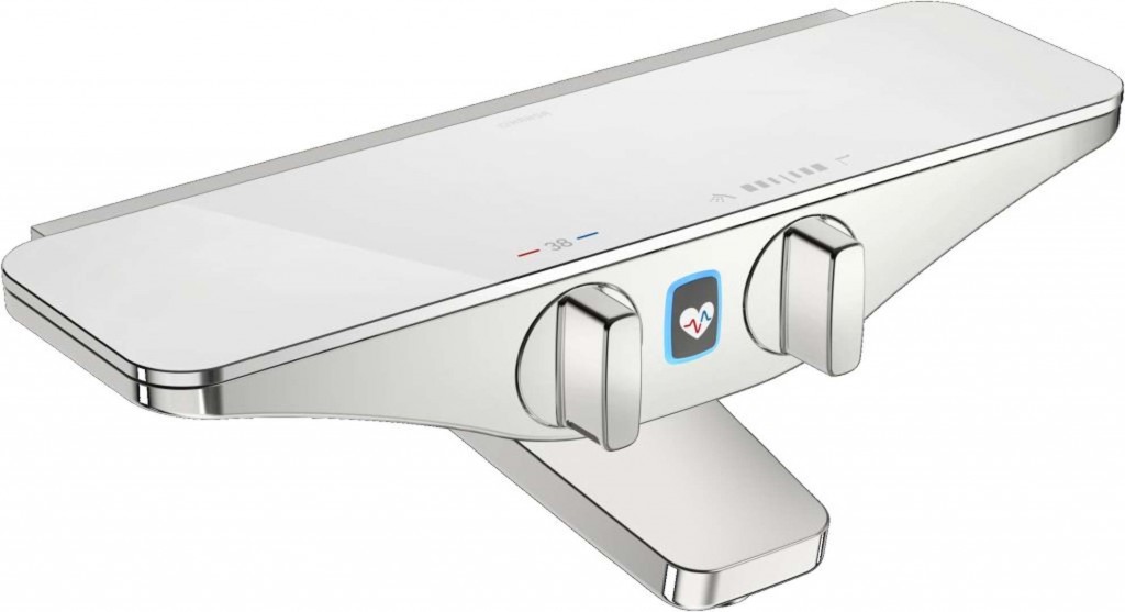 Vanová termostatická baterie pro nástěnnou montáž, napájení z baterie barva chrom/bílá materiál mosaz barevné provedení antracit prostorná odkládací plocha z bezpečnostního skla termostatická kartuše  pro ovládání teploty, CASCADE® perlát… (celý popis)