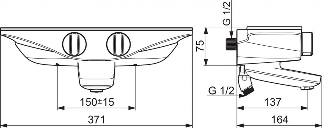 Vanová termostatická baterie pro nástěnnou montáž, napájení z baterie