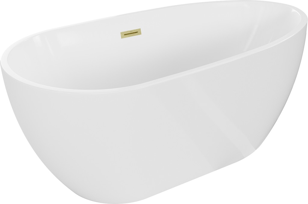 Mexen Eos je elegantní volně stojící vana o rozměrech 150 x 75 cm, která kombinuje moderní design s funkčností. Vyrobeno ze sanitárního akrylátu, zajišťuje trvanlivost a odolnost proti matování a UV záření. Bílá barva a zlatý kartáčovaný povrch mu dodávají luxusní vzhled. Vana je navíc vybavena přepadovým otvorem a nasazeným sifonem s click-clack zátkou. Jeho oválný tvar a odpovídající výška 58 cm z něj činí ideální prvek každé koupelny.