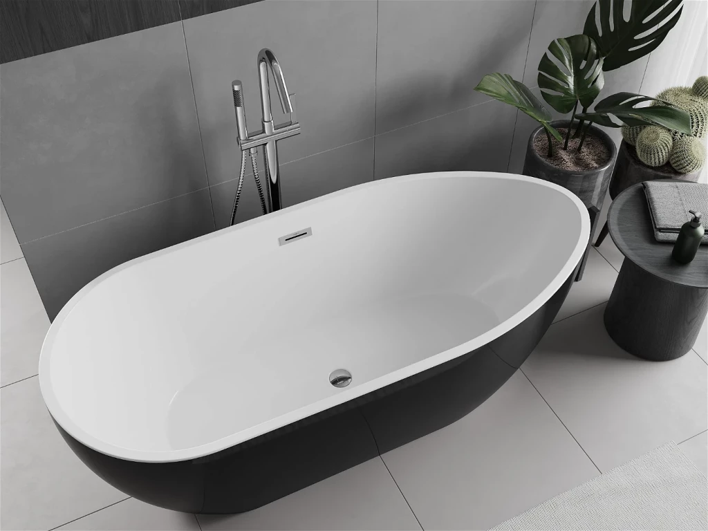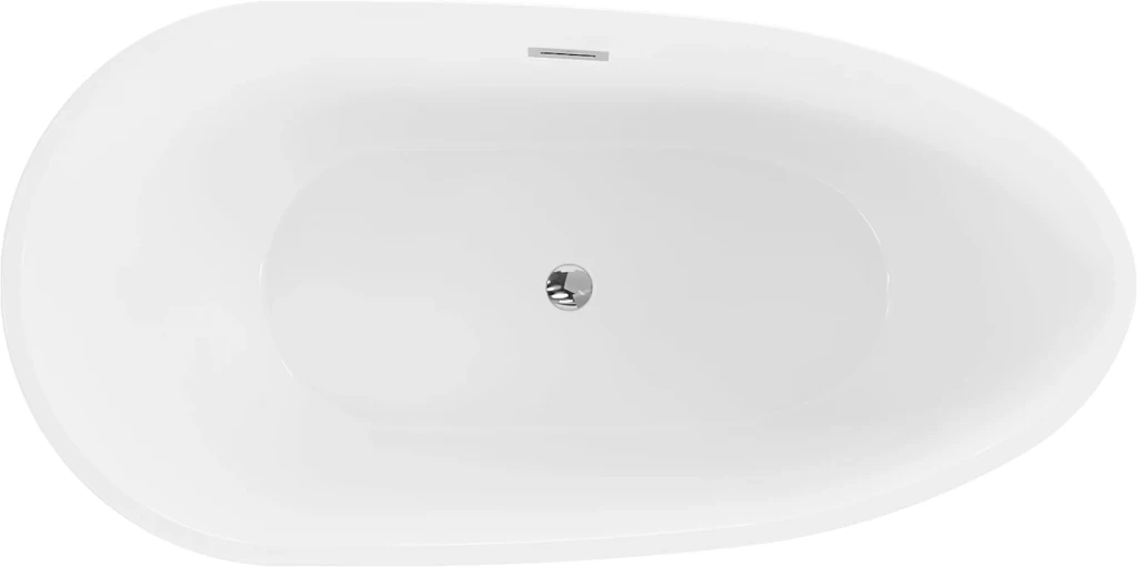 Volně stojící oválná akrylátová vana série EOS od výrobce MEXEN s přepadem a umístěném odpadu na středu vany.