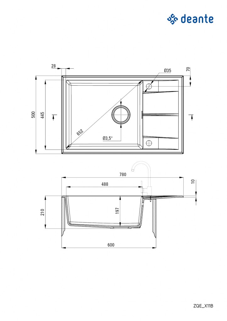 Granitový dřez Deante série ERIDAN je vyroben z nejkvalitnějšího přírodního granitového kompozitu. Vyznačuje se odolností proti nárazu, vysoké teplotě a náhlým změnám, v souladu s evropskou normou PN-EN 13310. Moderní povrch nebledne a neztrácí lesk. Dokonale se hodí k dřevěným a kamenným deskám. Praktický 1-miskový dřez s odkapávačem je perfektním řešením v malých kuchyních a studiových bytech s kuchyňským koutem. Funguje i jako plocha na sušení, profilovaný povrch účinně odvádí vodu stékající z nádobí nebo umytého jídla.