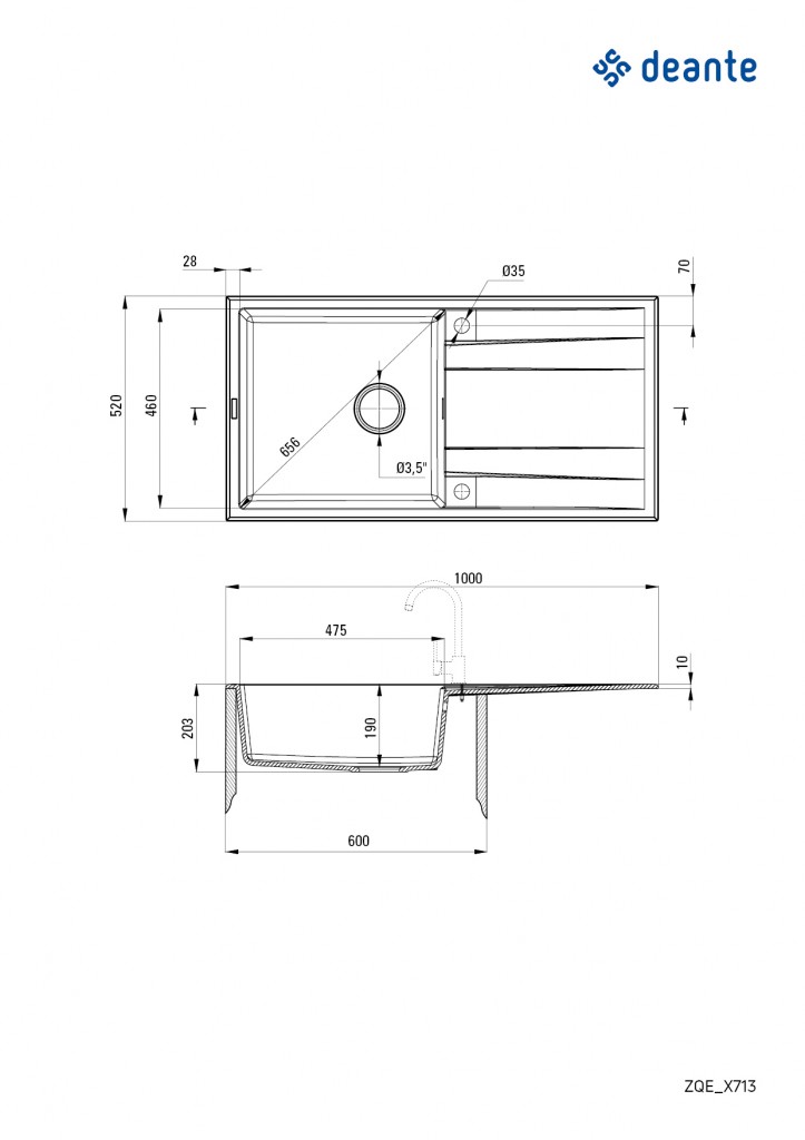 Granitový dřez Deante série ERIDAN je vyroben z nejkvalitnějšího přírodního granitového kompozitu. Vyznačuje se odolností proti nárazu, vysoké teplotě a náhlým změnám, v souladu s evropskou normou PN-EN 13310. Moderní povrch nebledne a neztrácí lesk. Dokonale se hodí k dřevěným a kamenným deskám. Praktický 1-miskový dřez s odkapávačem je perfektním řešením v malých kuchyních a studiových bytech s kuchyňským koutem. Funguje i jako plocha na sušení, profilovaný povrch účinně odvádí vodu stékající z nádobí nebo umytého jídla.
