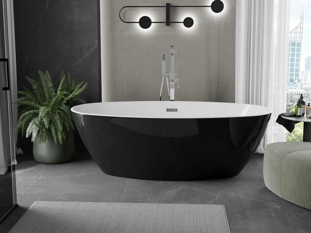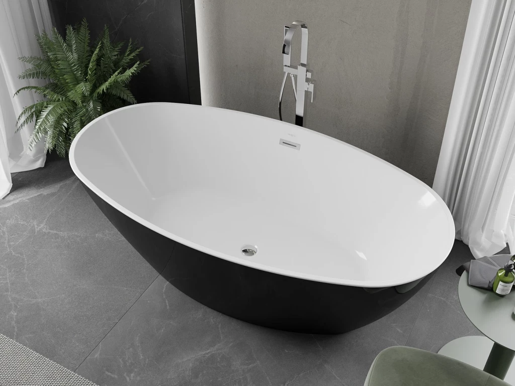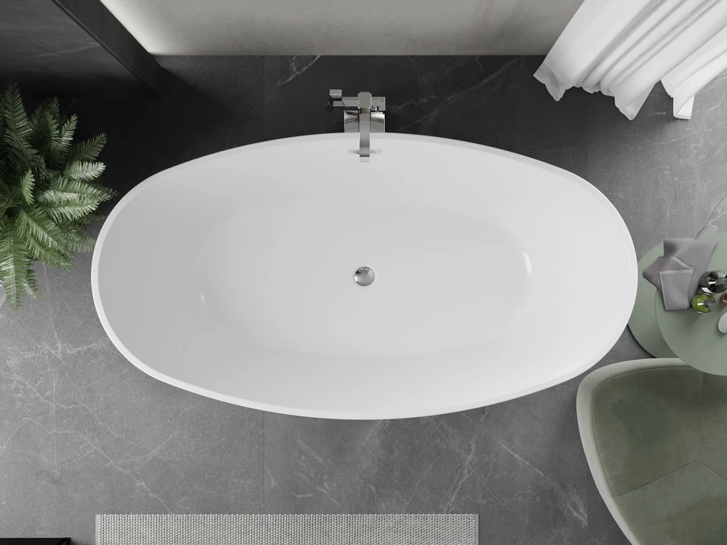Volně stojící oválná vana ERIS je koupelnový prvek, který není připevněn ke stěnám nebo podlaze a stojí samostatně v prostoru koupelny. Je to často luxusní a designový prvek, který přináší do koupelny elegantní a moderní vzhled. Volně stojící vany jsou často spojovány s luxusními koupelnami a nabízejí jedinečný zážitek z koupání.