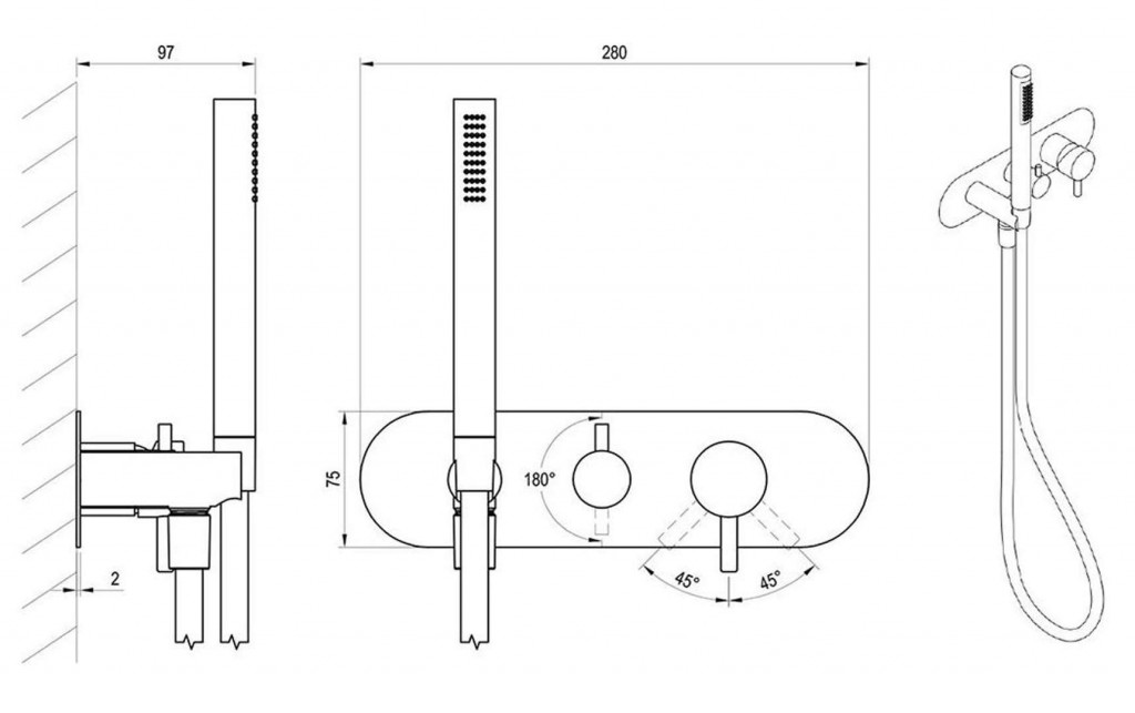 - včetně ruční sprchy a sprchové hadice