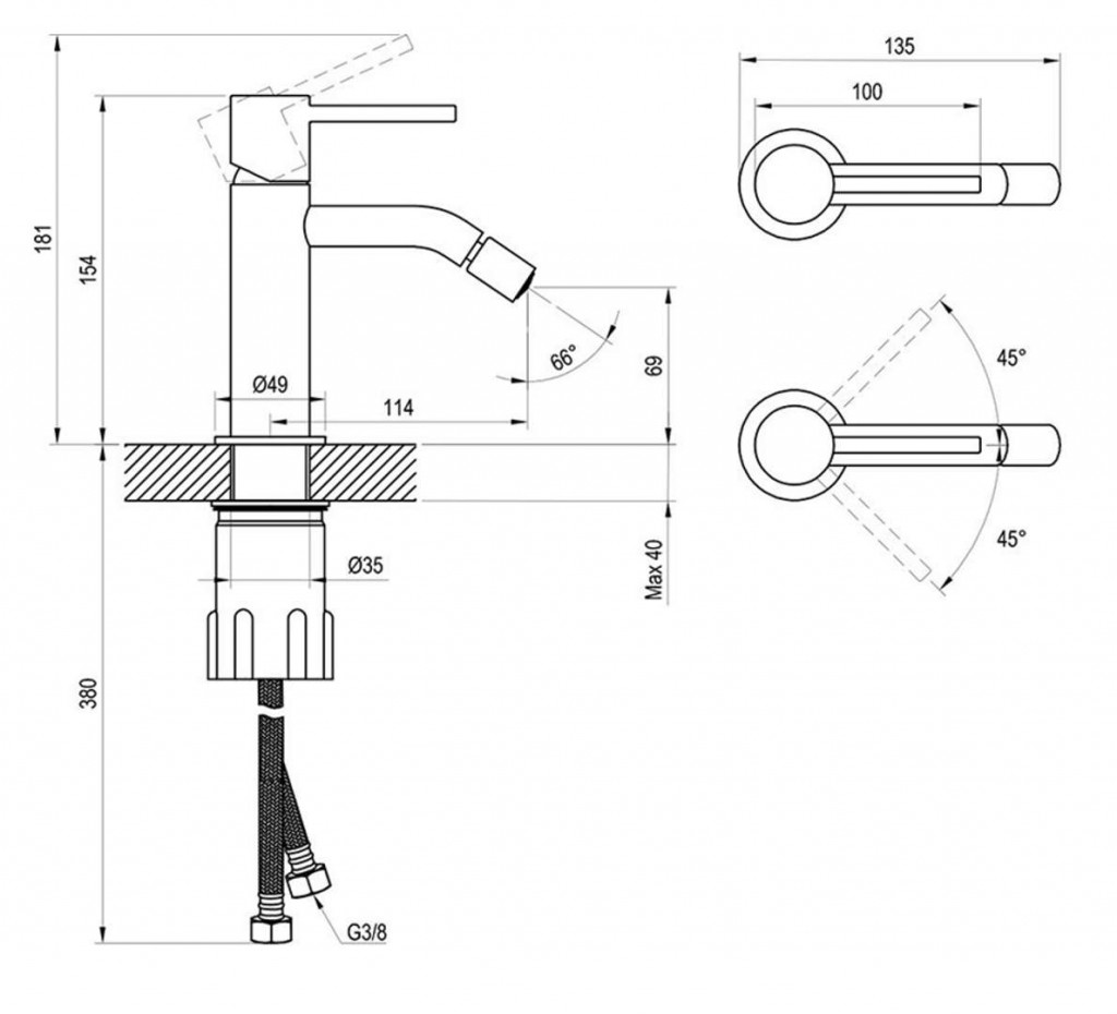 Bidetová stojánková baterie, bez výpusti