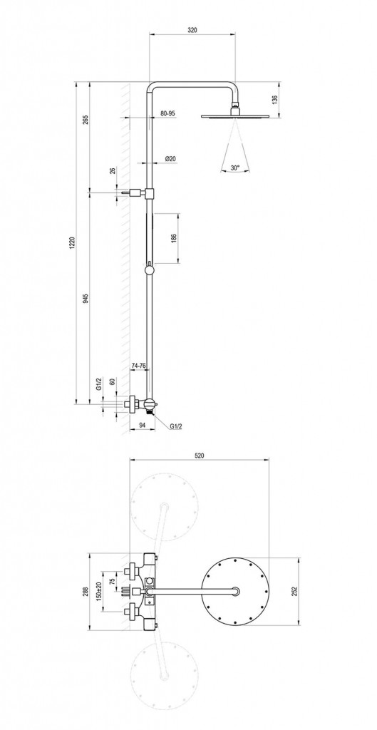 - rozteč 150±15 mm