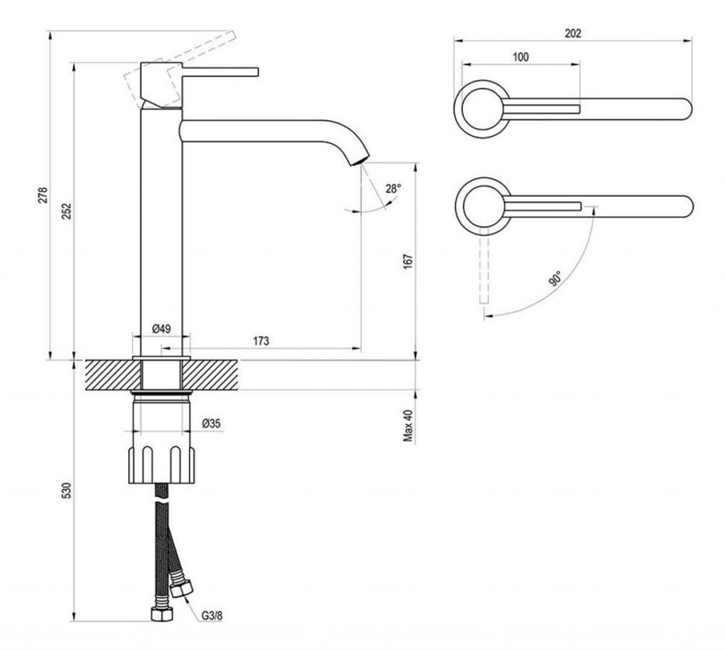 Umyvadlová stojánková baterie, bez výpusti