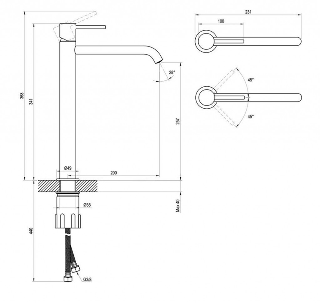 - vysoké provedení, vhodná pro umyvadla na desku