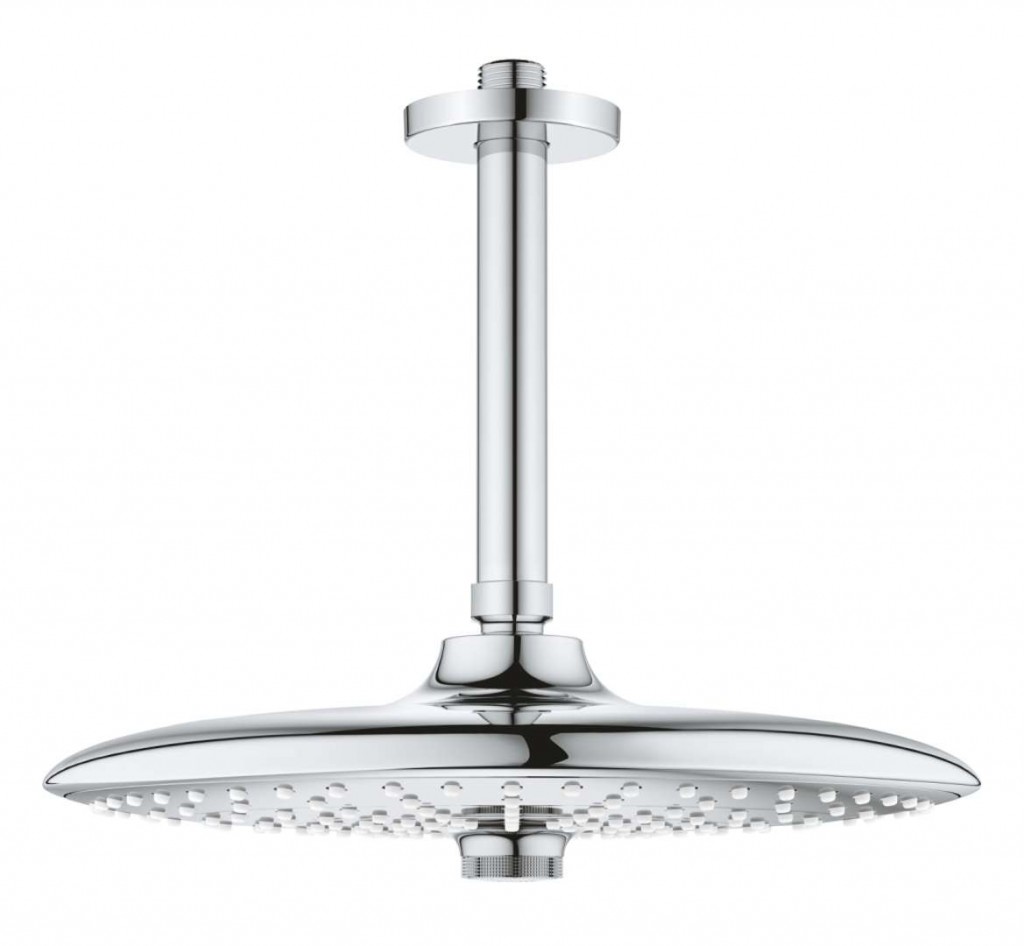 Dodejte své koupelně kvalitní doplněk v podobě setu hlavové sprchy GROHE Euphoria 260 SmartControl, která nabízí impozantní, 260 mm sprchovou hlavici a disponuje třemi různými režimy proudu pro dokonalý požitek ze sprchování. Přitom vše, co potřebujete ke změně režimu proudu, je otočit inovativním kolečkem uprostřed sprchové hlavice. Velmi prosté. Díky svému štíhlému profilu a nadčasovému designu sprcha skvěle zapadne do koupelen různých stylů, zatímco je uvnitř plná sofistikovaných technologií GROHE. Součástí sprchového setu je 142 mm dlouhé sprchové rameno, jehož instalace je velmi snadná. Vnitřní rozvody WaterGuide zabraňují, aby se vnější povrch sprchy příliš zahříval, čímž chrání nejen vaši citlivou pokožku, ale také chromový povrch. GROHE Euphoria 260 SmartControl – vše pro relaxaci a dokonalý požitek ze sprchy.