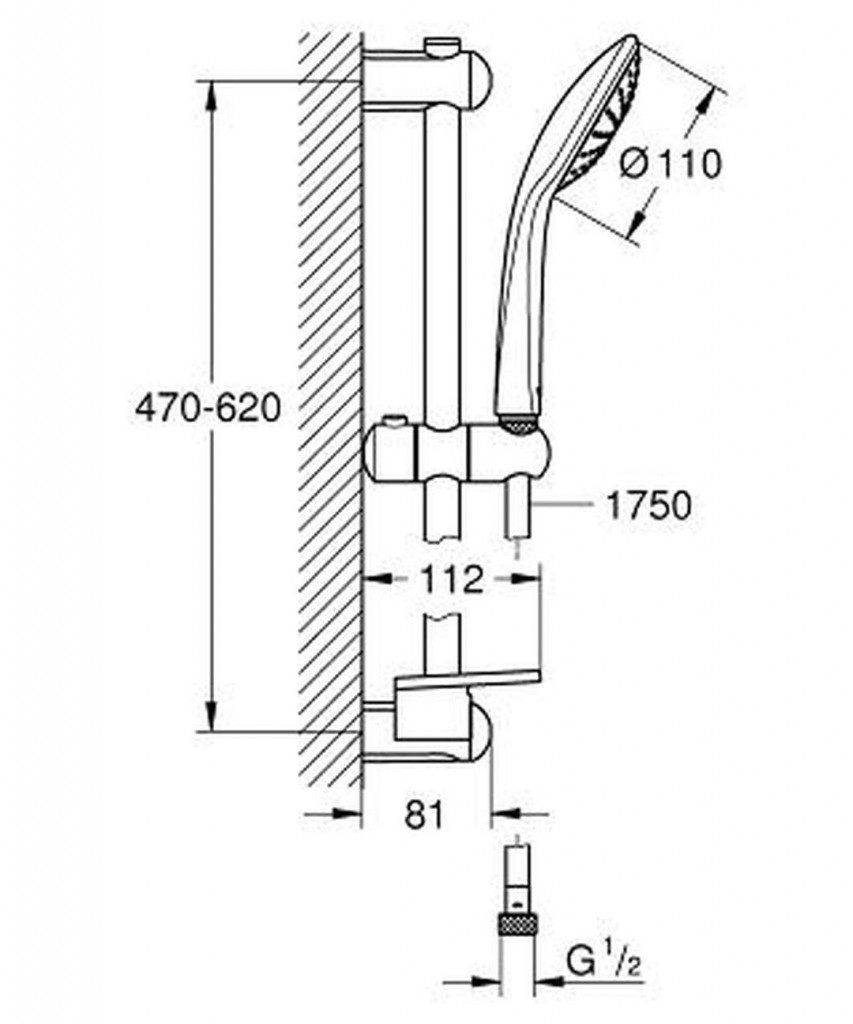 - GROHE QuickFix (horní držák nastavitelný pro přizpůsobení existujících otvorů)