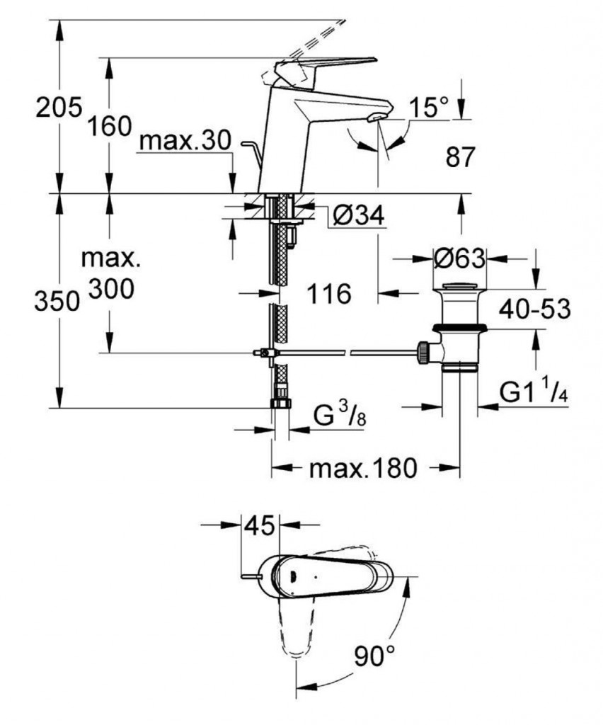 Páková umyvadlová baterie DN 15
